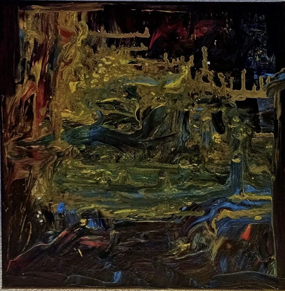 Cosmic Love plonge le regard dans un univers profond où se mêlent bleus, ors et touches sombres, comme une galaxie en mouvement. Les formes se devinent plus qu’elles ne se décrivent, laissant chacun imaginer paysages, silhouettes ou constellations secrètes. C’est une œuvre méditative, idéale pour créer une ambiance intime et mystérieuse.
